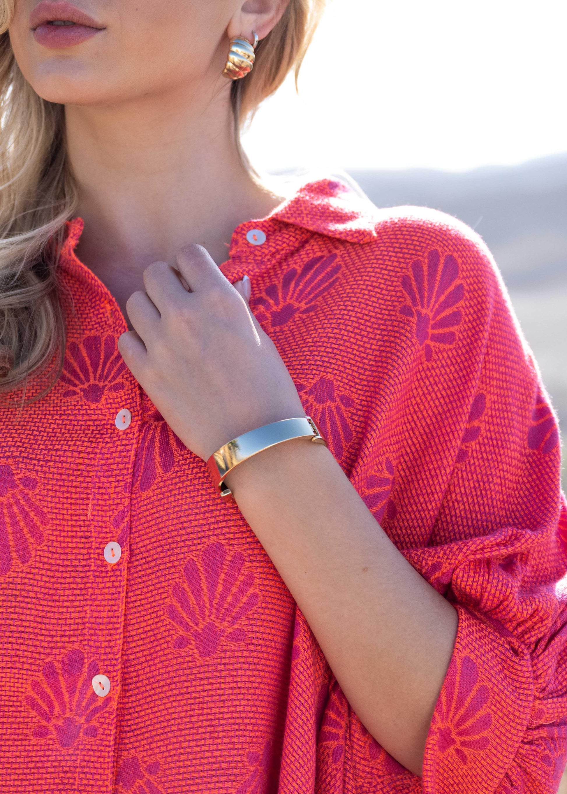 Ruimvallende blouse van Bianca (Gold & Silver) met contrasterende kleuren en schelpen motief. De blouse heeft aangeknipte mouwen, een knoopsluiting en een iets langere rugzijde.