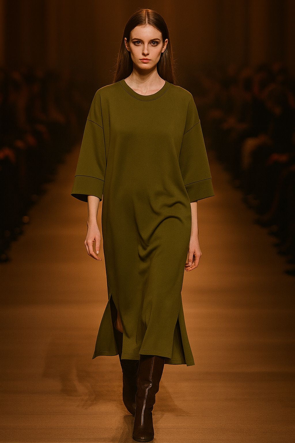 Garçonne lange jurk olijfgroen