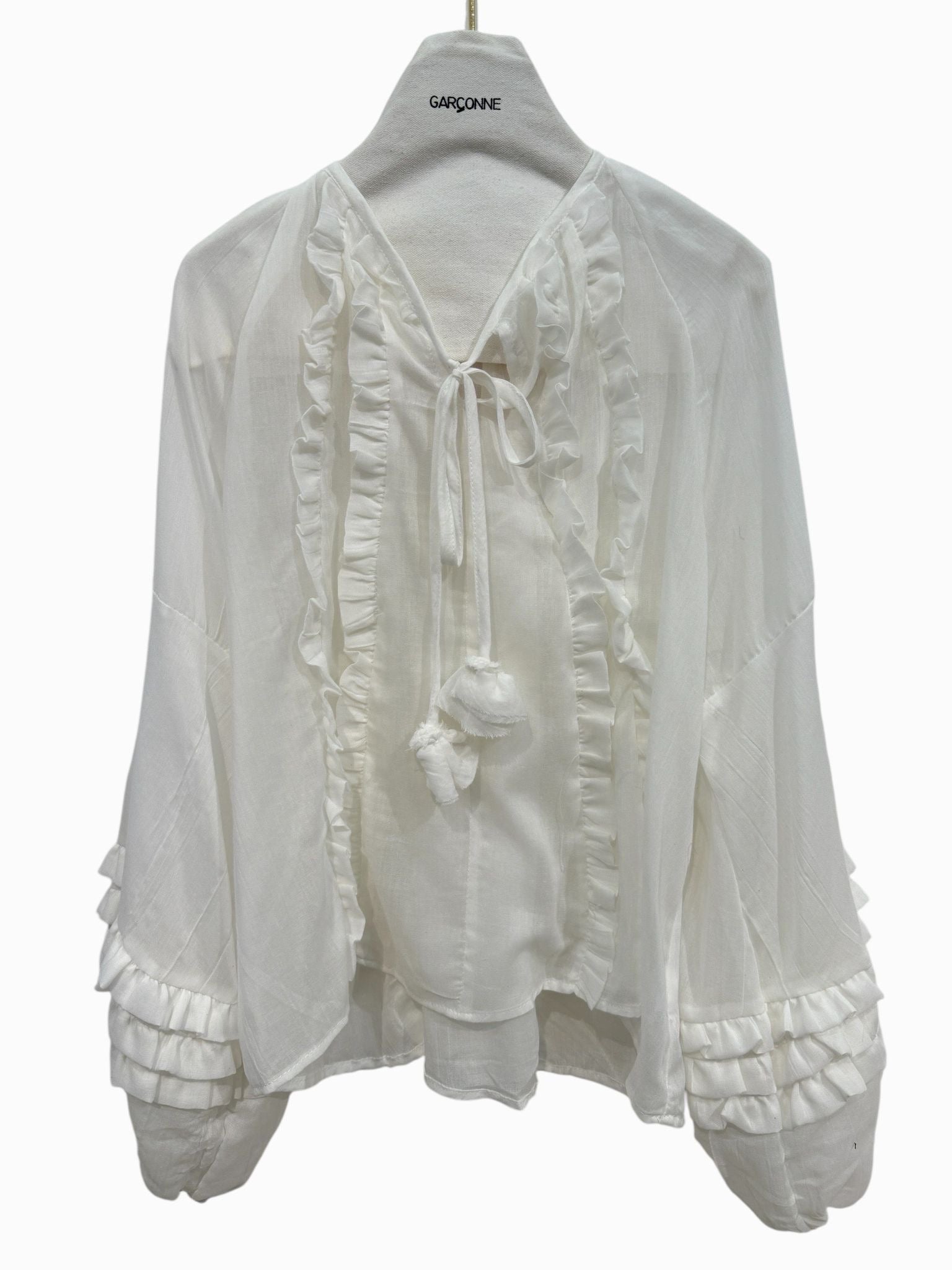 Losvallende top met ruches en wijde ballonmouw