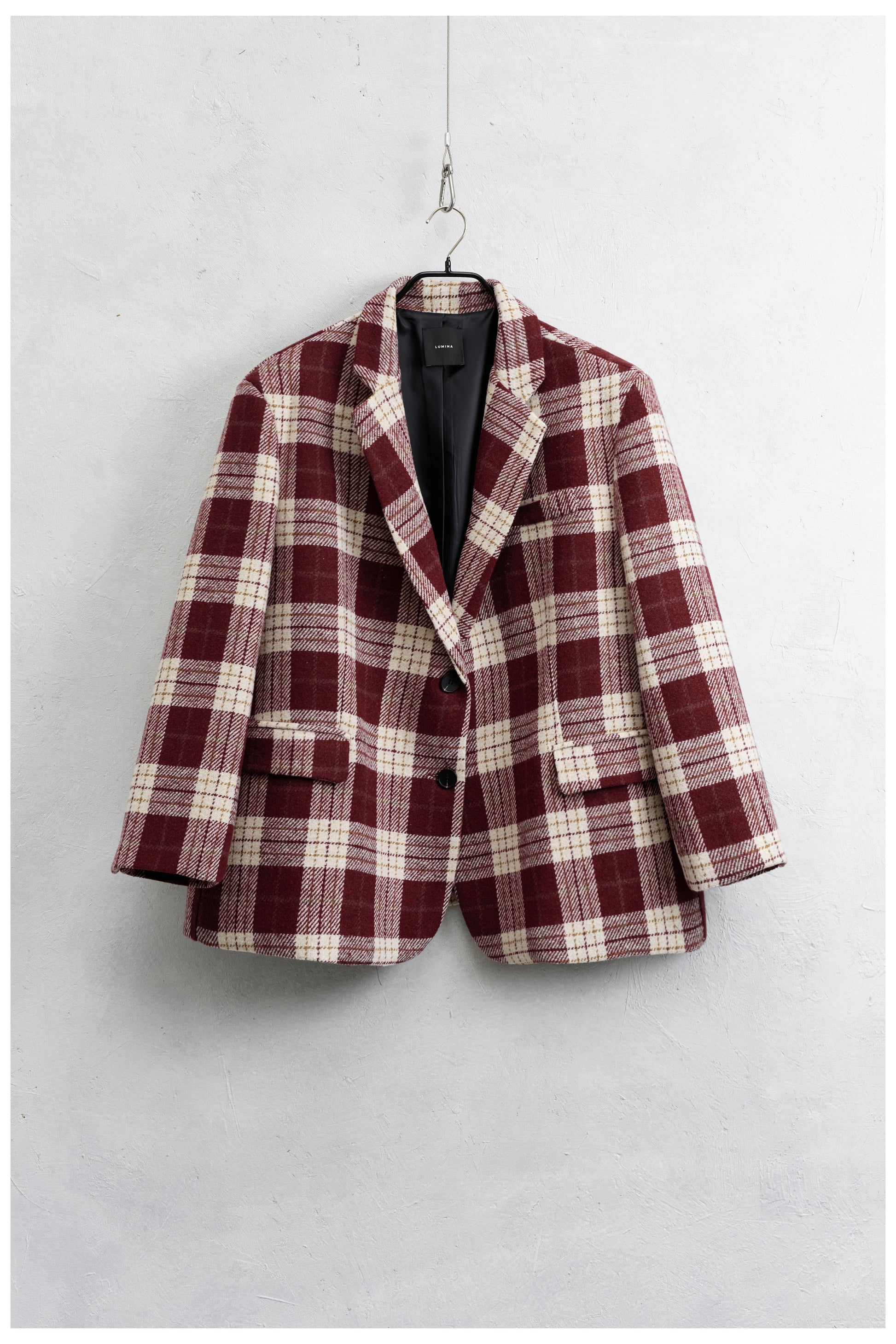 Oversized blazer met revers kraag en Schots ruitjespatroon. De blazer heeft schoudervullingen, een enkele knoopsluiting en een paspelzak op de borst.