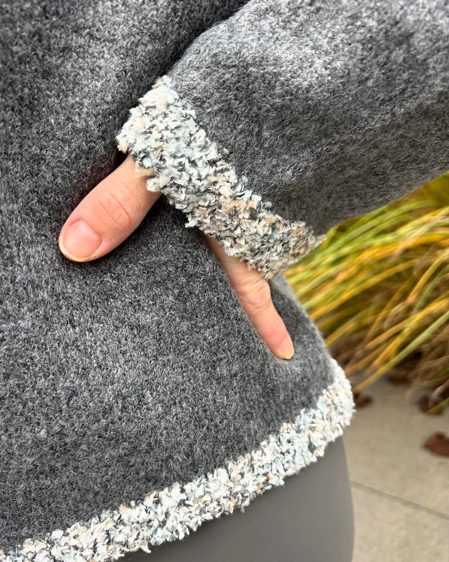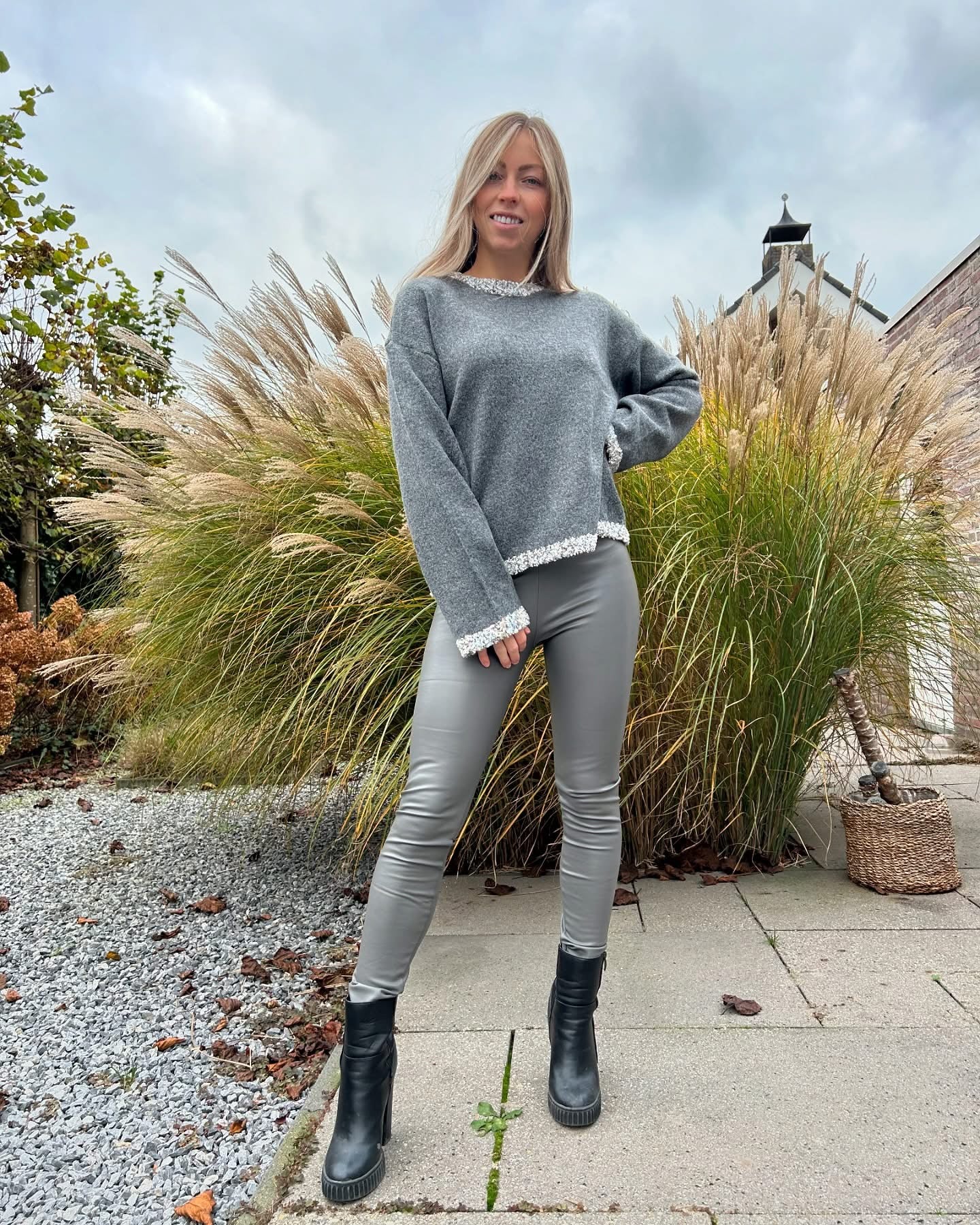 Little details! Los vallende trui met contrasterende boorden en wijde mouwen.
